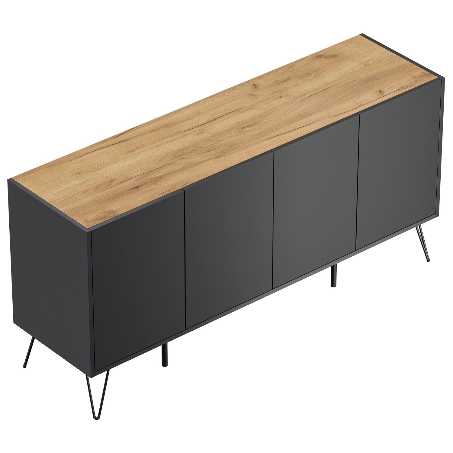 Posseik Sideboard Industrial H Stehend 4 Türen 155 cm Grafit Eiche Top
