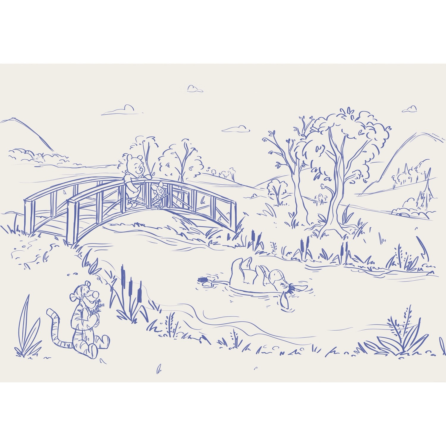 Komar Vlies Fototapete Disney Winnie the Pooh Blue Ink Beige-Blau