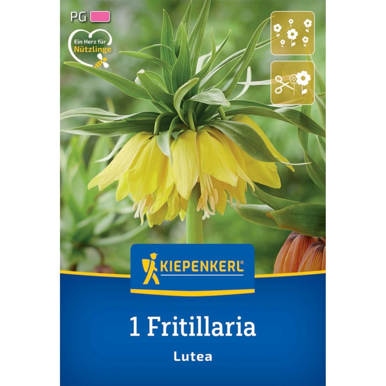 Die Kaiserkrone Lutea aus dem Kiepenkerl-Blumenzwiebelsortiment wird ca. 80 groß und wirkt in Gruppen gepflanzt noch imposanter. Von April bis Mai entfalten sich die großen, glockig geformten Einzelblüten. Sie sind strahlend gelb gefärbt und versprühen einen frühsommerlichen Flair. Lutea fühlt sich an sonnigen Standorten besonders wohl und hat die ungewöhnliche Eigenschaft, Wühlmäuse und Maulwürfe zu vertreiben.