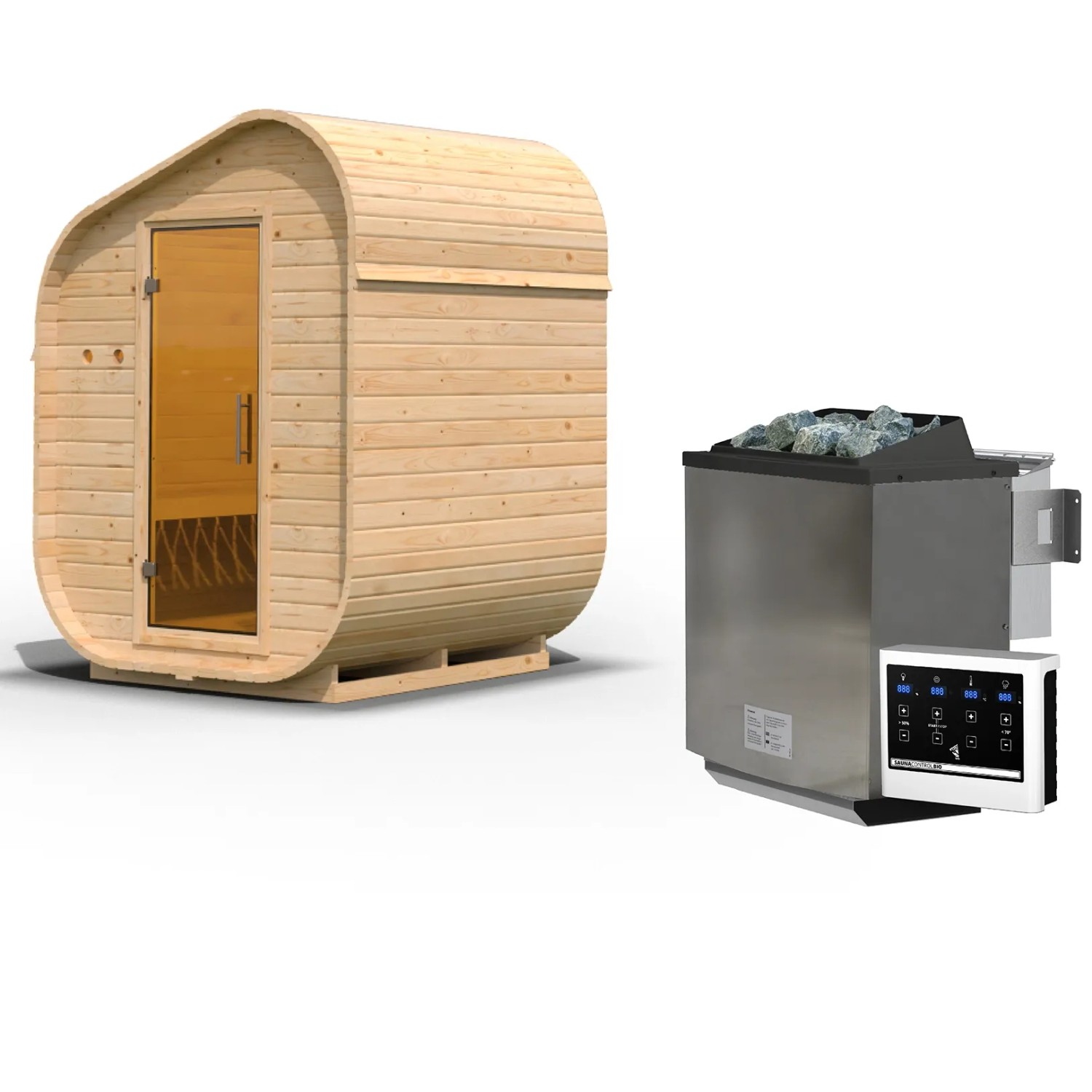 Karibu Fasssauna "Asymmetrisch 1" mit Ofen 9 kW Bio Extern Naturbelassen