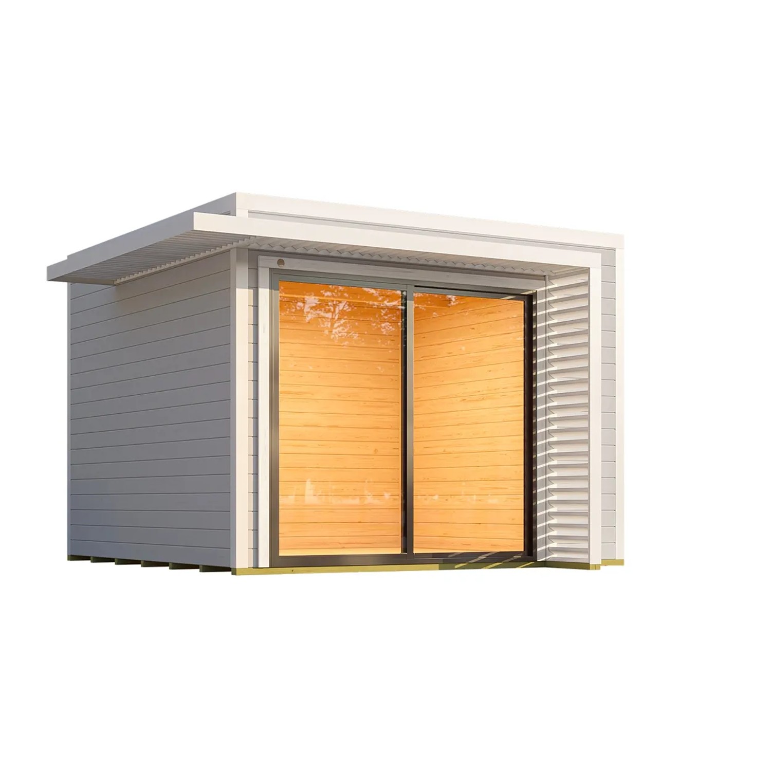 Weka Gartenhaus Amberley Doppelschiebetür Grau-Weiß 300 cm x 300 cm