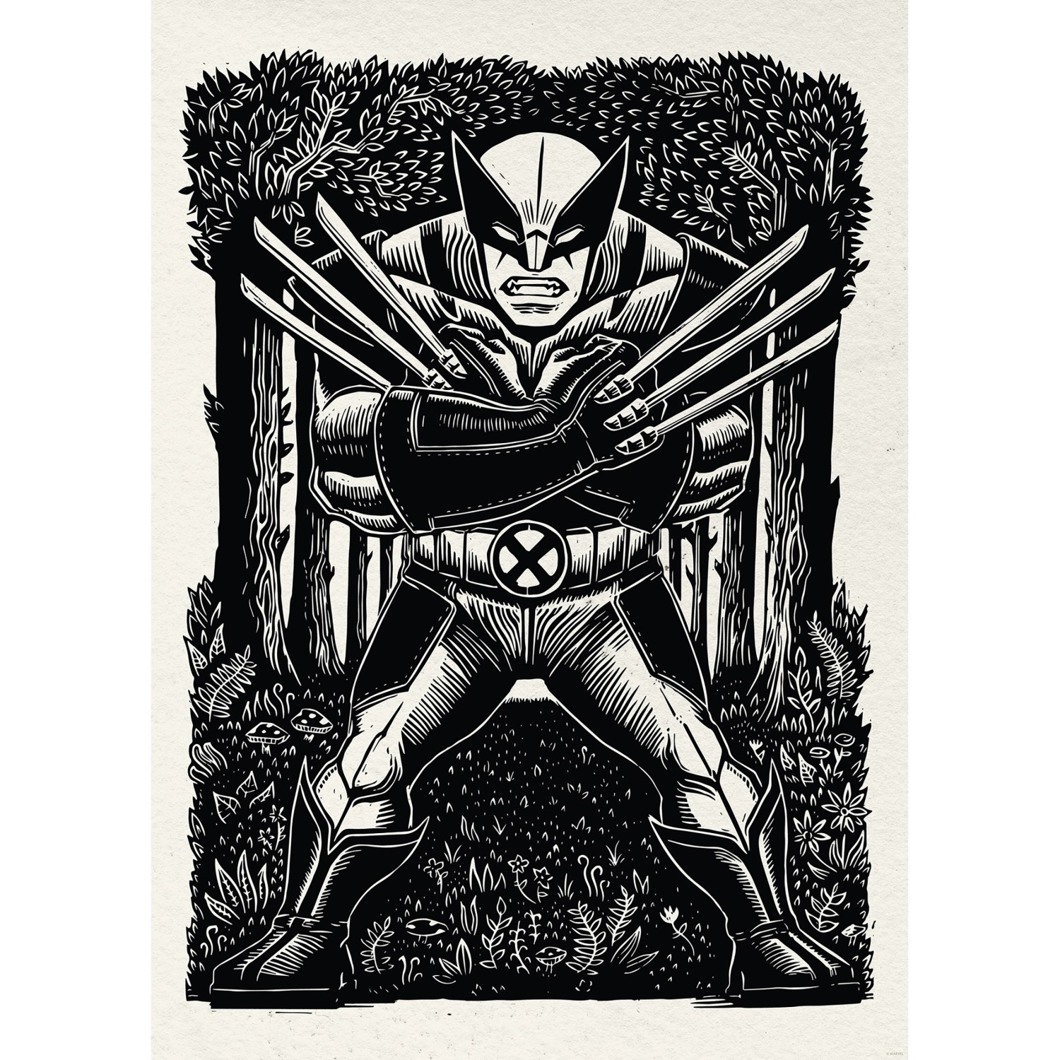 Komar Wandbild Marvel Wolverine Lino-Cut 50 cm x 70 cm Schwarz-Weiß
