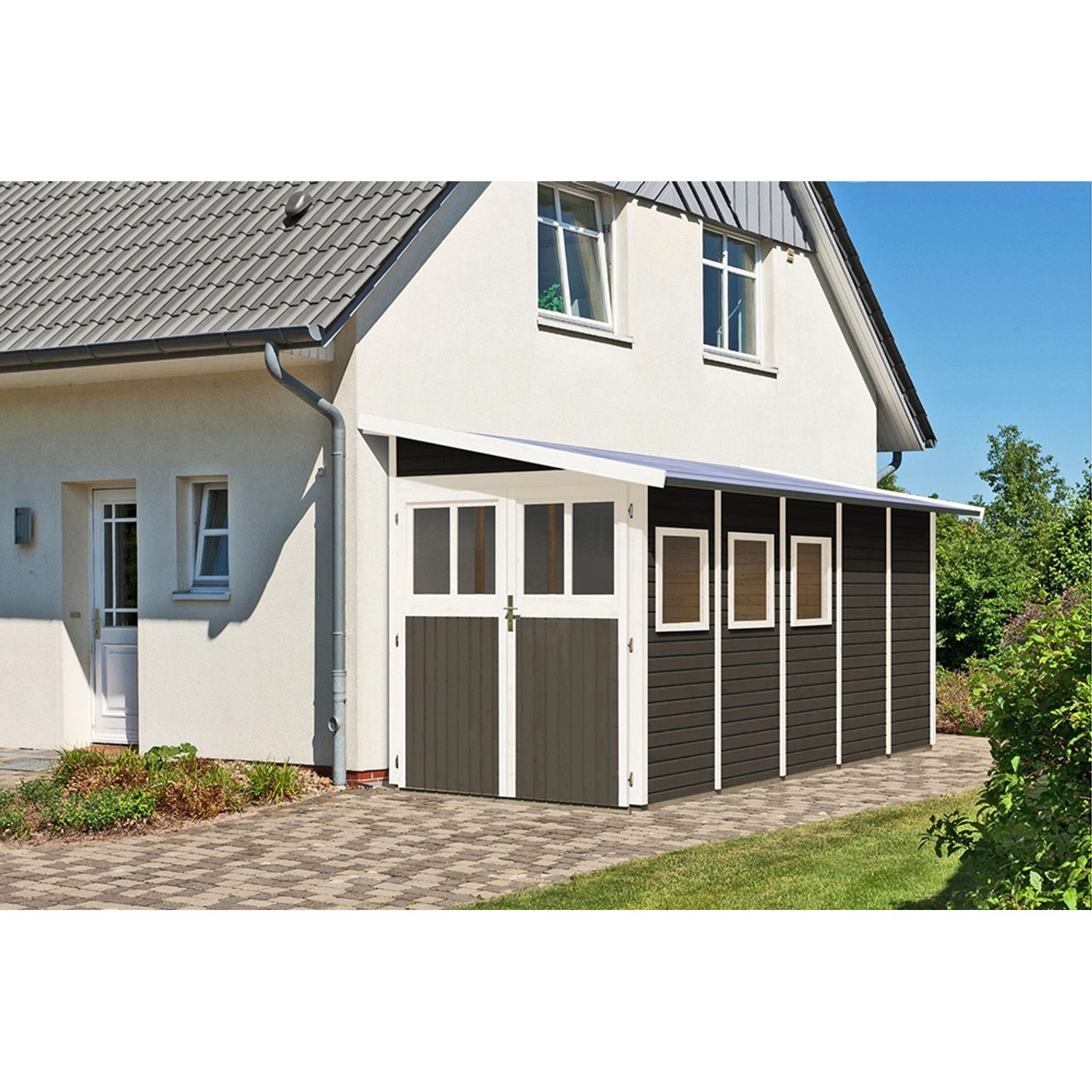 Karibu Holz-Gartenhaus Kristiansund Terragrau Lackiert 181 cm x 442 cm