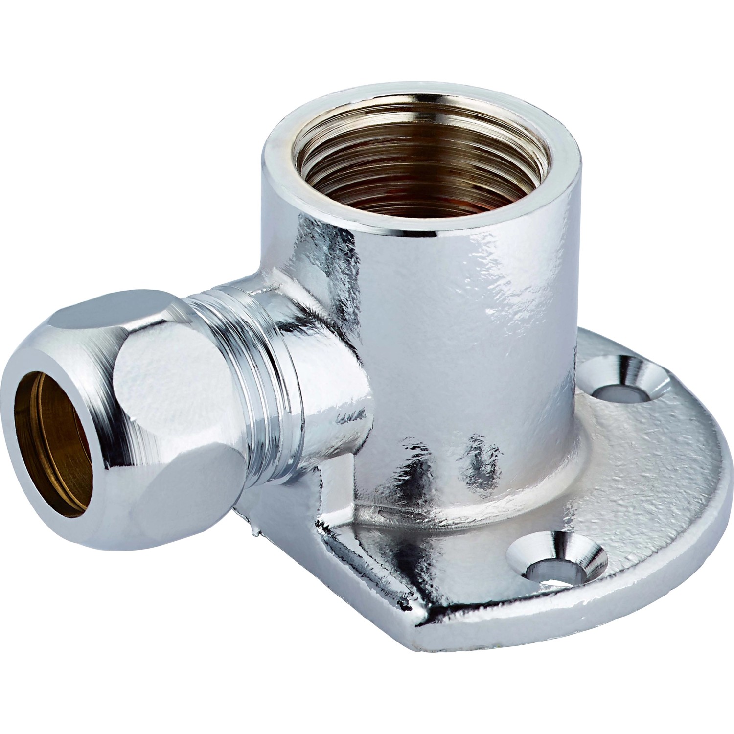 Die praktische Quetschverschraubung wird eingesetzt für den wasserdichten Anschluss von Waschbecken, Waschtischen, WC-Spülkästen, Untertischarmaturen und Waschmaschinen. Die Form ist als 90 ° -Winkel ausgeführt. Zum sicheren Anschrauben an die Wand oder an die Decke ist die praktische, integrierte Wandscheibe vorgesehen. Sie besitzt drei vorgefertigte Bohrungen zum Befestigen. Ausgestattet ist das Element mit einem Innengewinde von 18,6 mm (G 1/2), für den Anschluss der Rohrleitung über Verschraubung. Der Anschluss der Quetschverbindung besitzt einen Innendurchmesser von 12 mm. Die stabile Verbindung besteht aus verchromtem Messing. Messing ist robust und sorgt für eine hohe Verschleißfestigkeit bei verbessertem Härtegrad. Die Oberfläche bietet aufgrund der hochwertigen Verchromung eine hohe Kratzfestigkeit und Korrosionsbeständigkeit. Das Winkelstück ist zur Trinkwasserinstallation zugelassen.