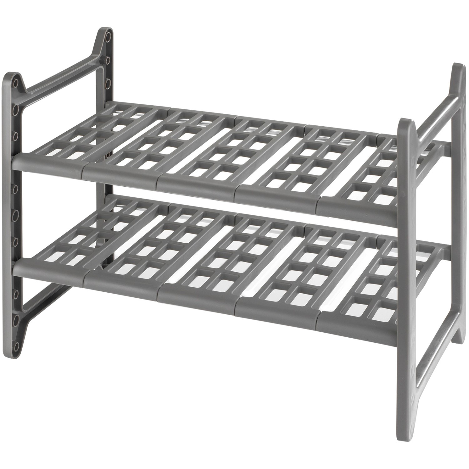 Das Unterschrankregal Flexi schafft viel Platz und zusätzliche Ablagefläche in der Küche. Er eignet sich ideal als Spülbeckenunterschrank zur Ablage von Putz- und Spülmitteln, Tüchern, Lappen, Bürsten und Schwämmen. In der Breite ist das Spülschrankregal variabel und die verschiebbaren Böden ermöglichen die nötigen Aussparungen für Siphon, Abläufe und Leitungen. Die stabile Konstruktion aus Aluminium und Kunststoff macht dieses Regal zu einem nützlichen Helfer in jedem Haushalt.