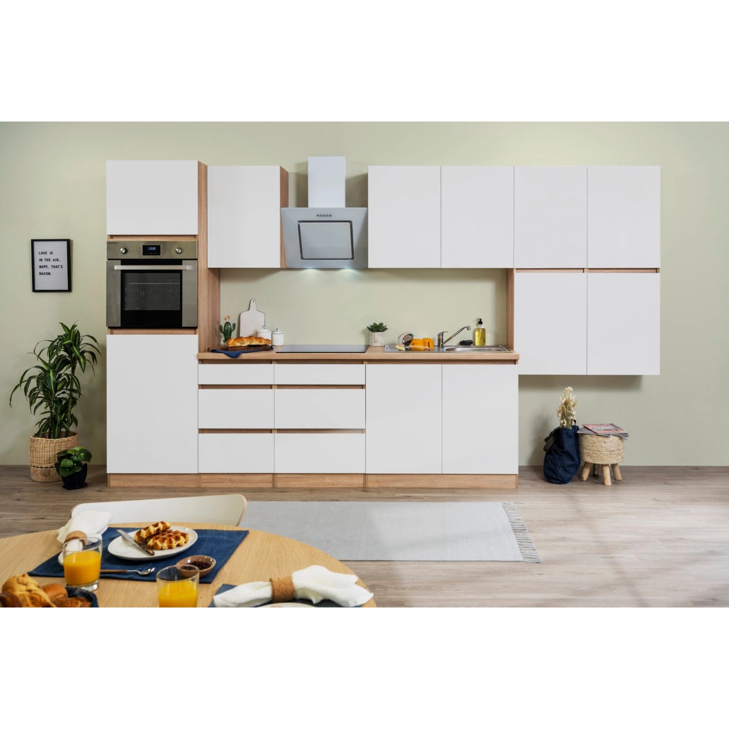 Bitte beachten Sie, dass Sie für den Anschluss einer neuen Küche einiges an Zubehör benötigen. Das Herdanschlusskabel sowie der Siphon und weiteres Zubehör sind nicht im Lieferumfang enthalten. Eine Auflistnug mit Empfehlungen finden Sie im Datenblatt "Sonstiges". Lassen Sie sich im Markt von unseren Küchenplaner