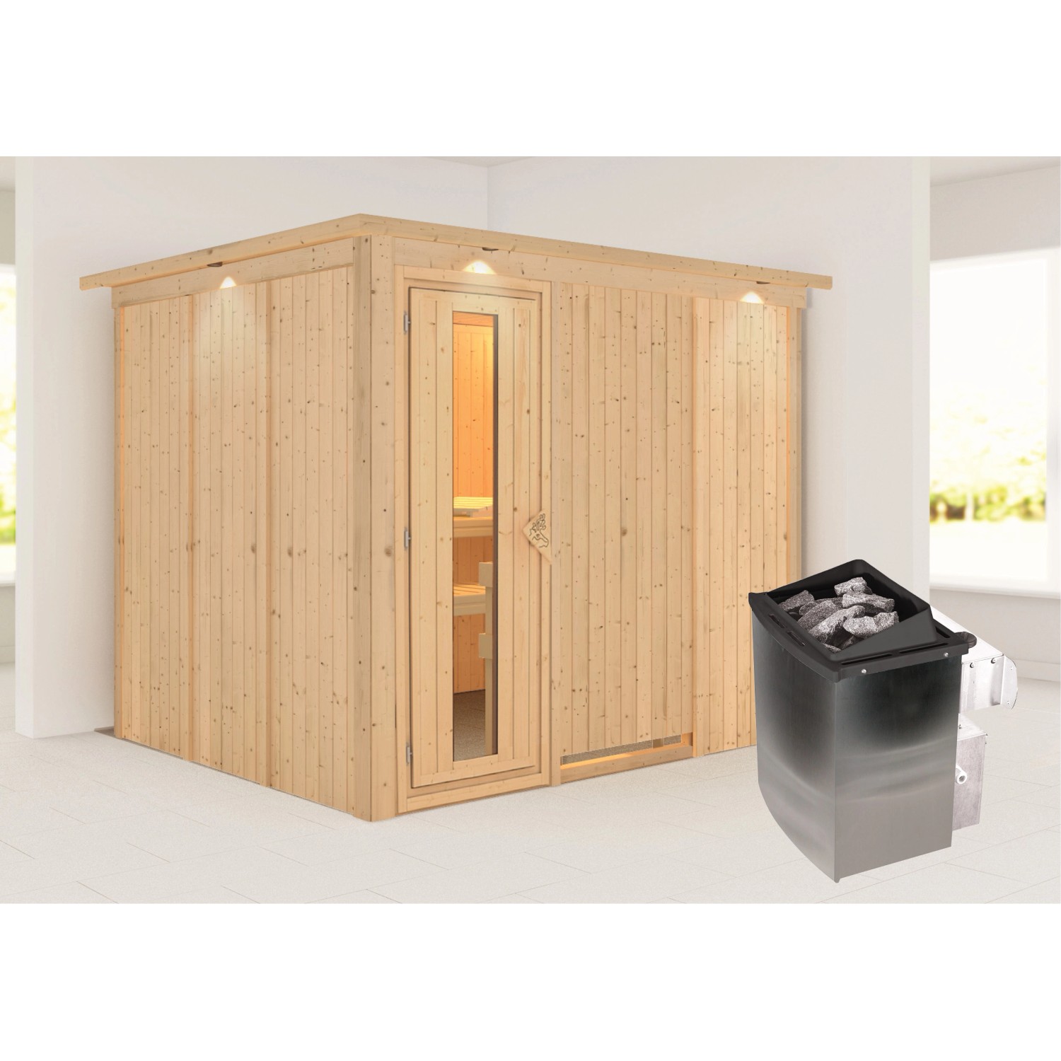Karibu Sauna Gunda mit Ofen intergrierte Stg.LED-Dachkranz Natur