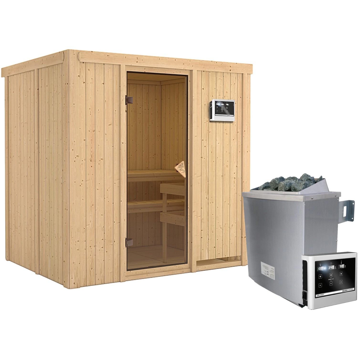 Karibu Sauna-Set Bjarne inkl. Edelstahl-Ofen 9 kW mit ext. Steuerung
