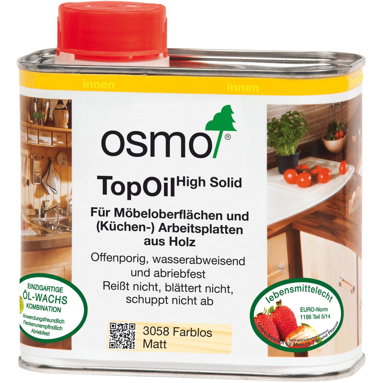 Osmo TopOil Pflege ist eine farblose oder transparente Öl-Wachs Kombination zur Behandlung von Möbeloberflächen und (Küchen-) Arbeitsplatten aus Holz. Osmo TopOil ist auf der Basis natürlicher pflanzlicher Öle und Wachse aufgebaut. Holzgerecht offenporig, reißt nicht, blättert nicht, schuppt nicht ab. Widerstandsfähig gegen Wein, Bier, Cola, Kaffee, Tee, Obstsaft, Milch und Wasser gemäß DIN 68861-1A - keine Wasserflecken. Der getrocknete Anstrich ist speichel- und schweißecht lt. DIN 53160, geeignet für Kinderspielzeug lt. EN 71.3.