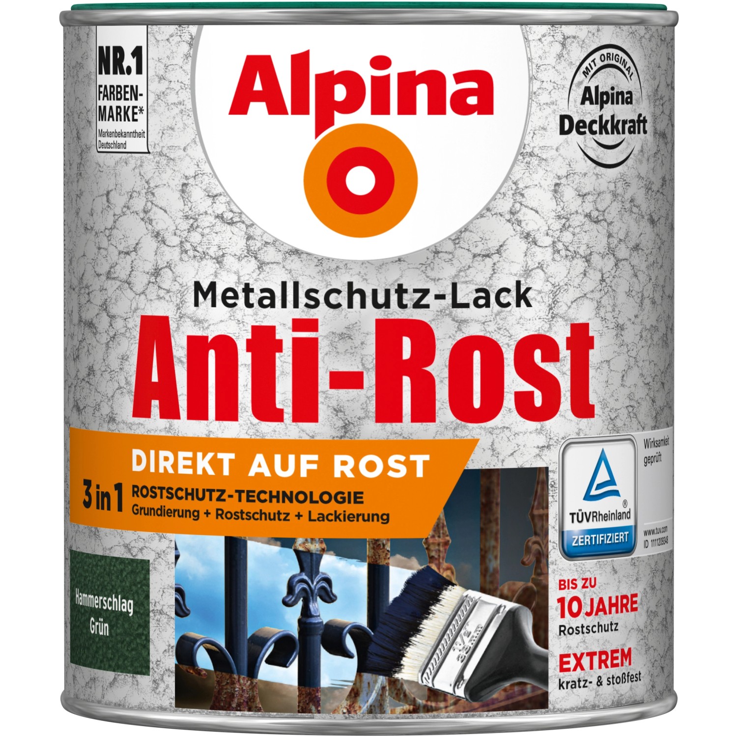 Alpina Metallschutz-Lack Anti-Rost Grün Hammerschlag 750 ml