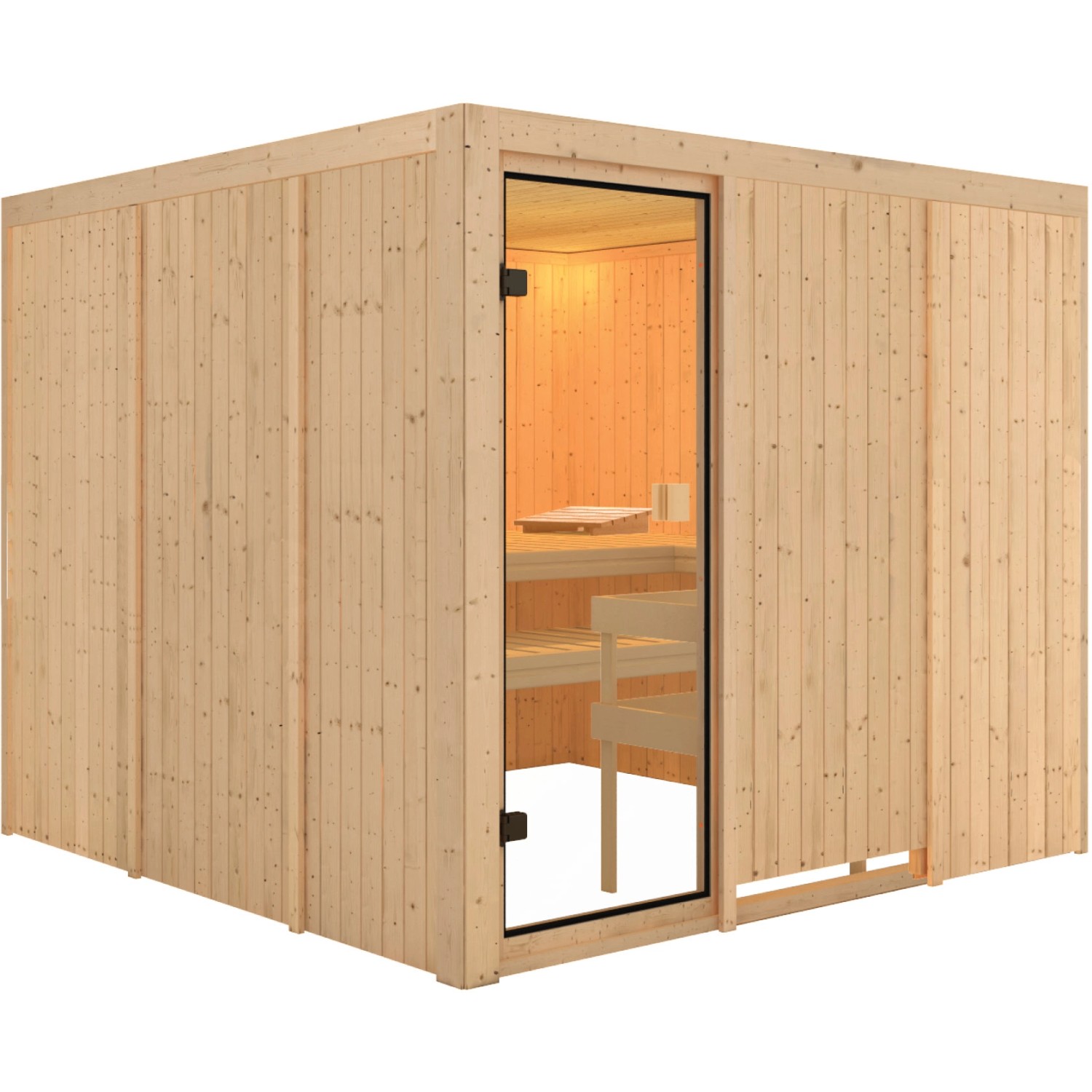 Karibu Sauna Arvika mit Fronteinstieg, Glastür Bronziert