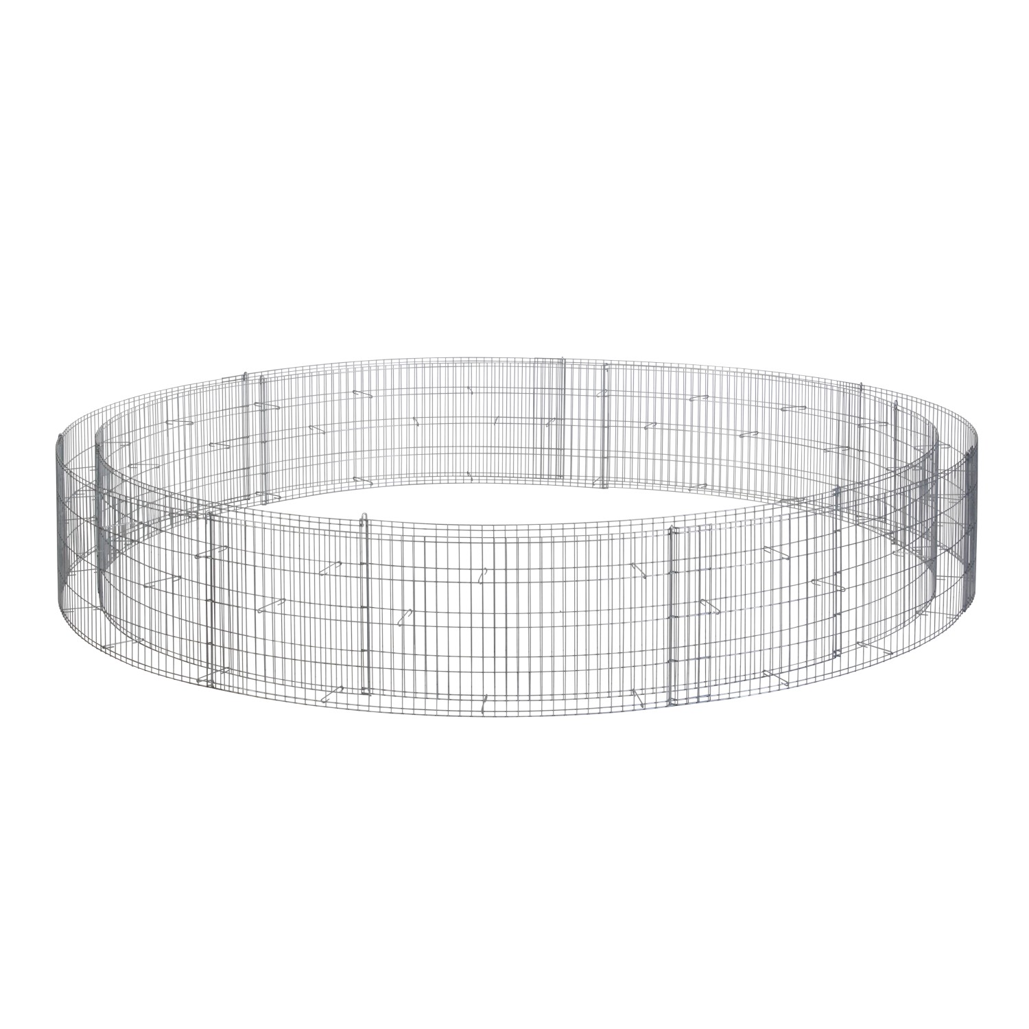 Der Aufbau des Gabionenbeets erfolgt in wenigen, unkomplizierten Schritten. Stellen Sie die Gitter einfach zusammen und drehen die Spiralverbindungen ein. Abschließend hängen Sie die Abstandhalter ein und der Gitterkorb ist bereit zur Befüllung. Durch eine Gitterüberlappung können Sie auch den Durchmesser leicht verkleinern oder das Hochbeet für noch mehr Nutzfläche mit weiteren Gittern erweitern. Dank der Verarbeitung aus verzinktem Zink-Aluminium sind die Gitter rostfrei und anders als Hochbeete aus Holz vor Wasserschäden geschützt.