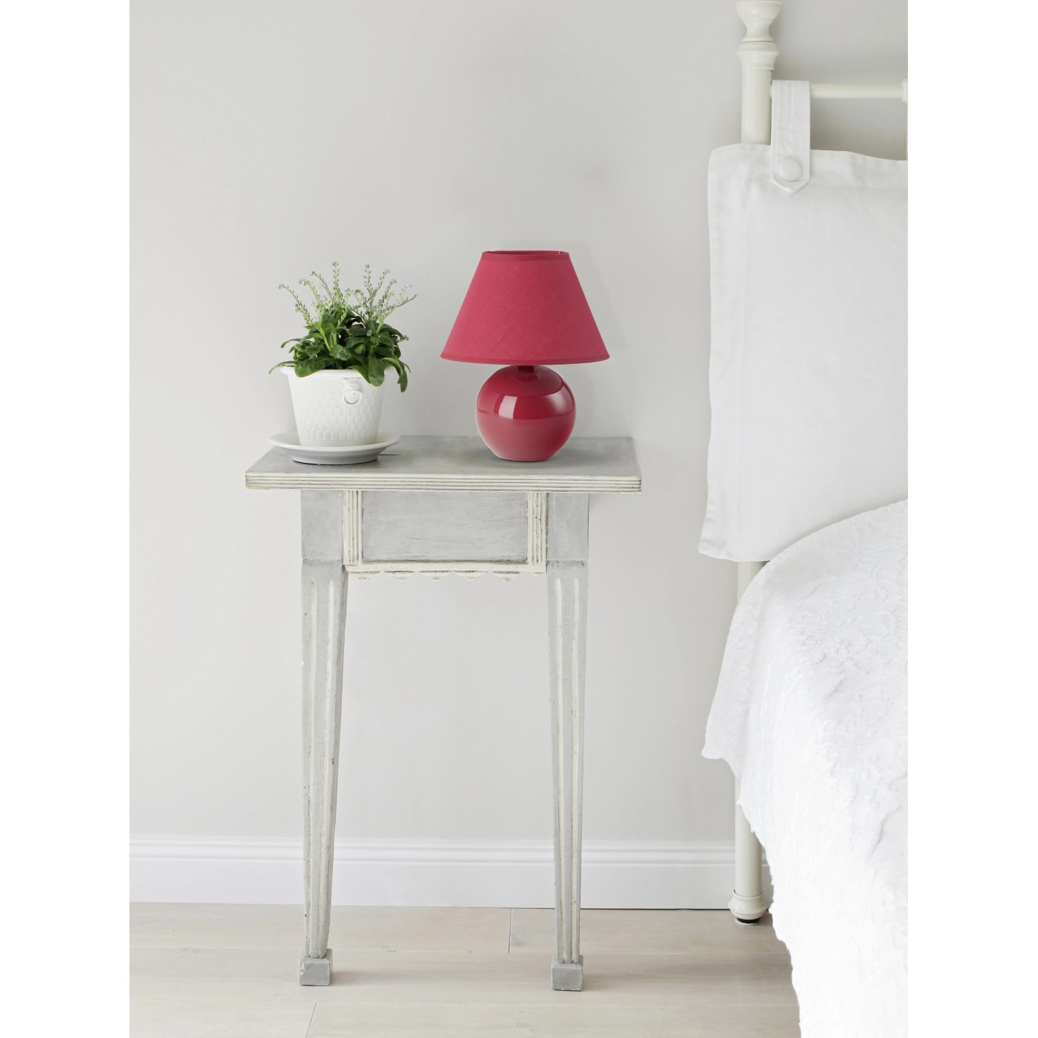 Diese schöne, kleine Tischleuchte hat einen Textilschirm der farblich passend abgestimmt ist auf die seidenmatt glänzend lackierte Basis. Die Leuchte ist für den Einsatz von Energiesparleuchtmitteln geeignet. Die Leuchte ist mit einem E14 Sockel für maximal 40 Watt ausgelegt.