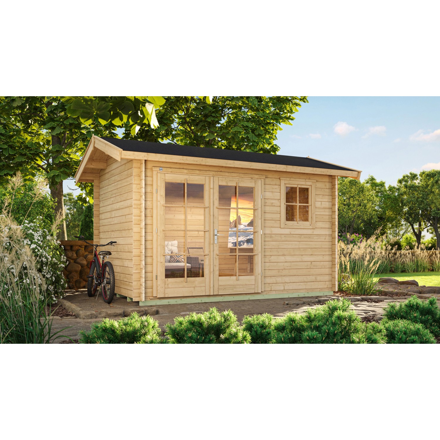 Das Gartenhaus überzeugt durch sein klassisches Design und ist dabei in schlichtem Natur gehalten. Es eignet sich für den universellen Einsatz als Geräteschuppen, Gartenpavillon oder Freizeithaus.
