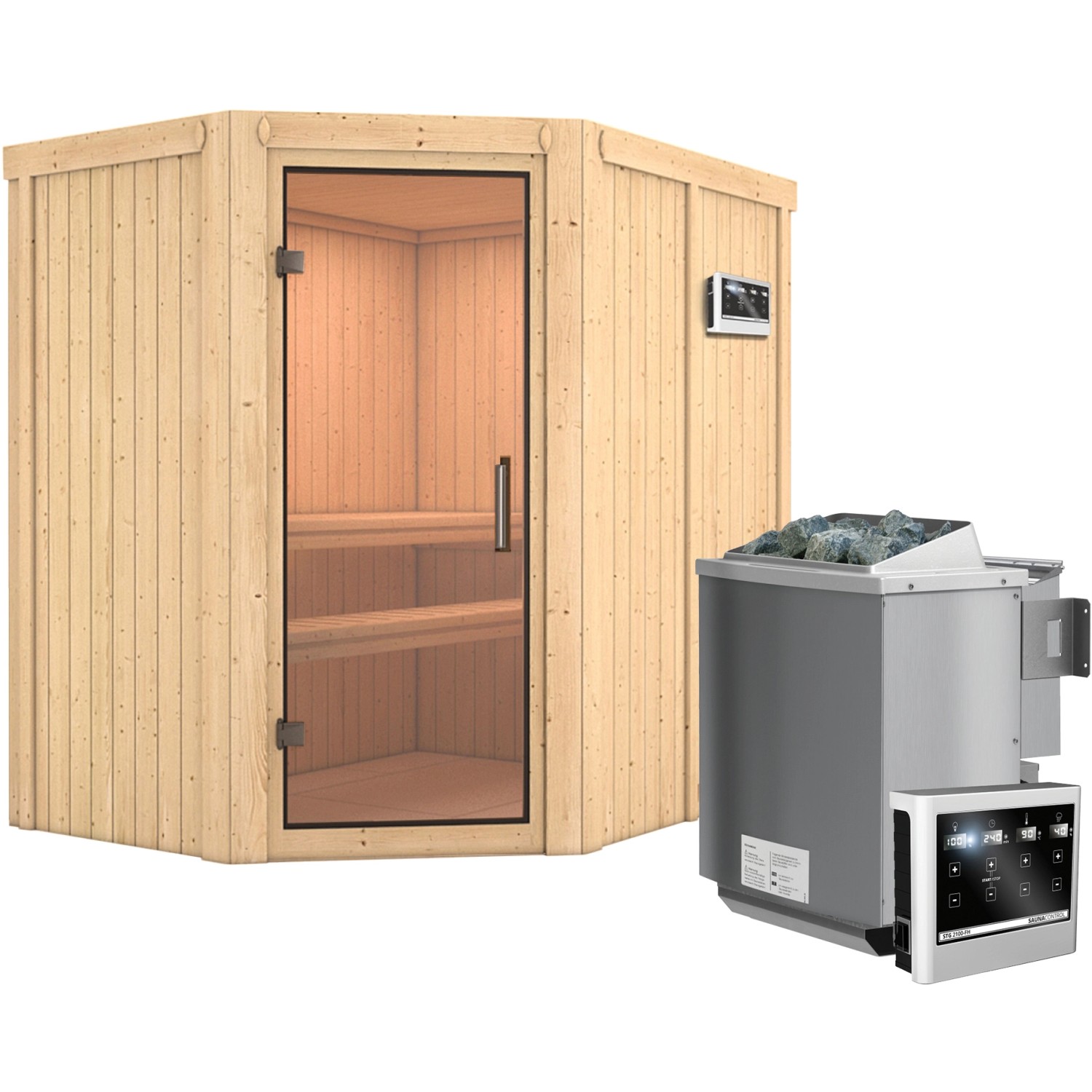 Karibu Sauna Cleo, Bio-Ofen, externe Steuerung Easy, Glastür