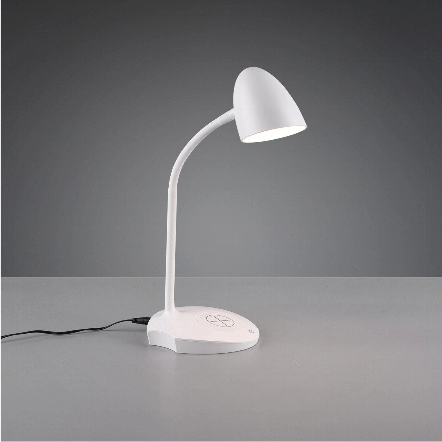 Die moderne Tischleuchte Load zeichnet sich durch zeitloses Design und ihre Benutzerfreundlichkeit aus. Unterstützt wird das Erscheinungsbild durch den integrierten 4-fach Touchdimmer, welcher vier Schaltstufen besitzt. Mit den ersten drei Schaltvorgängen kann die Helligkeitsstufe angepasst werden und beim vierten Schaltvorgang wird die Leuchte ausgeschaltet. So eignet sich die Tischleuchte ausgezeichnet als moderne Beleuchtung auf dem kleinen Beistelltisch oder auf der Kommode. Durch den flexibel verstellbaren Leuchtenkopf ist die Leuchte ideal als Schreibtischbeleuchtung einsetzbar. Als Zusatzfunktion verfügt die Leuchte über eine induktive Ladestation. So können entsprechend geeignete Smartphones problemlos durch einfaches Auflegen des Gerätes geladen werden. Die Tischleuchte ist in der Farbe Weiß designt und passt sich so sämtlichen Farbgestaltungen an.