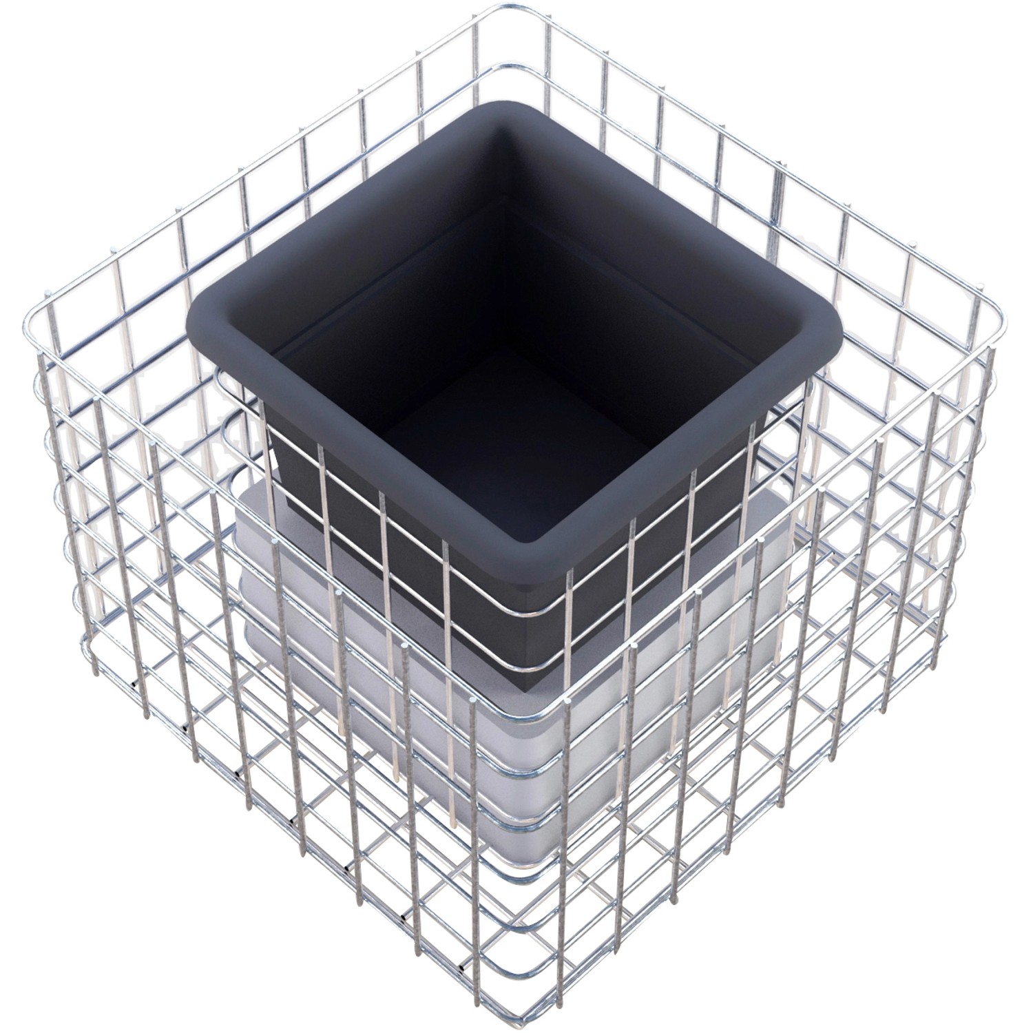 Befüllung: Hier sind der Fantasie keine Grenzen gesetzt, es eignen sich zum Beispiel: Natursteine, Granitpflaster, Bruchstein oder auch Glasbrocken, Holz, Tonziegel und vieles mehr. Generell sind alle Materialien mit einer Körnung ab ca. 32 mm möglich. Es werden ca. 45 kg Füllmaterial benötigt.