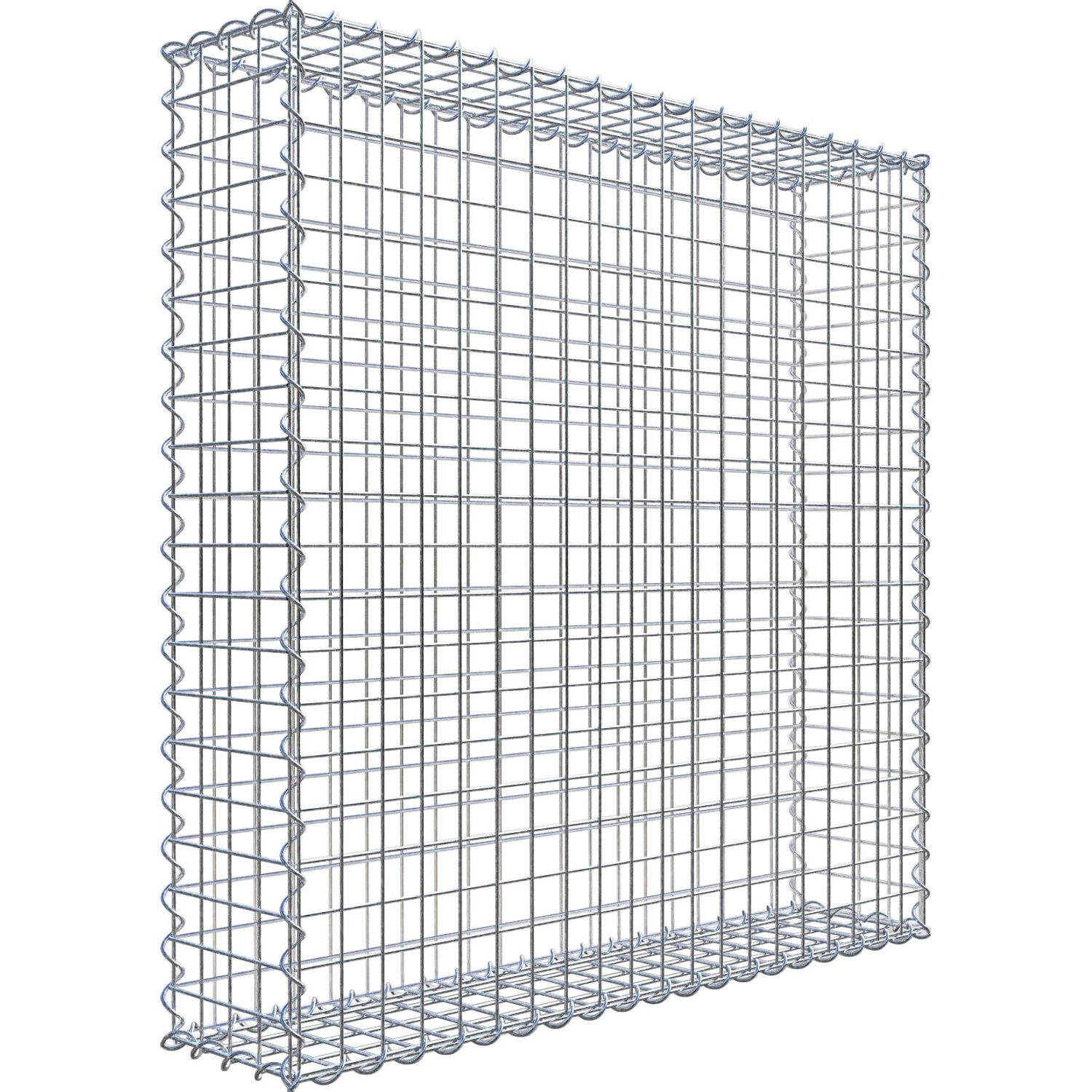 Der Gabionenkorb 100 cm x 100 cm x 20 cm von Gabiona besteht aus 4 mm starkem Drahtgitter mit einer Galvan-Beschichtung. Diese Verzinkung sorgt für einen hohen Korrosionsschutz. Ihre Maschenweite beträgt 5 cm x 5 cm. Sie wird komplett mit allen für den Aufbau benötigten Materialien (ohne Füllmaterial) geliefert.