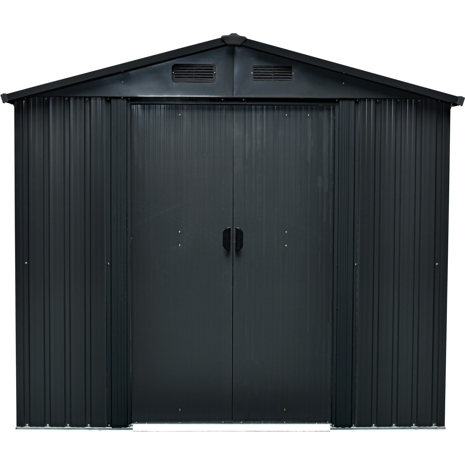 Das Metall-Gerätehaus überzeugt durch sein ansprechendes Design und ist dabei in schlichtem Anthrazit gehalten.