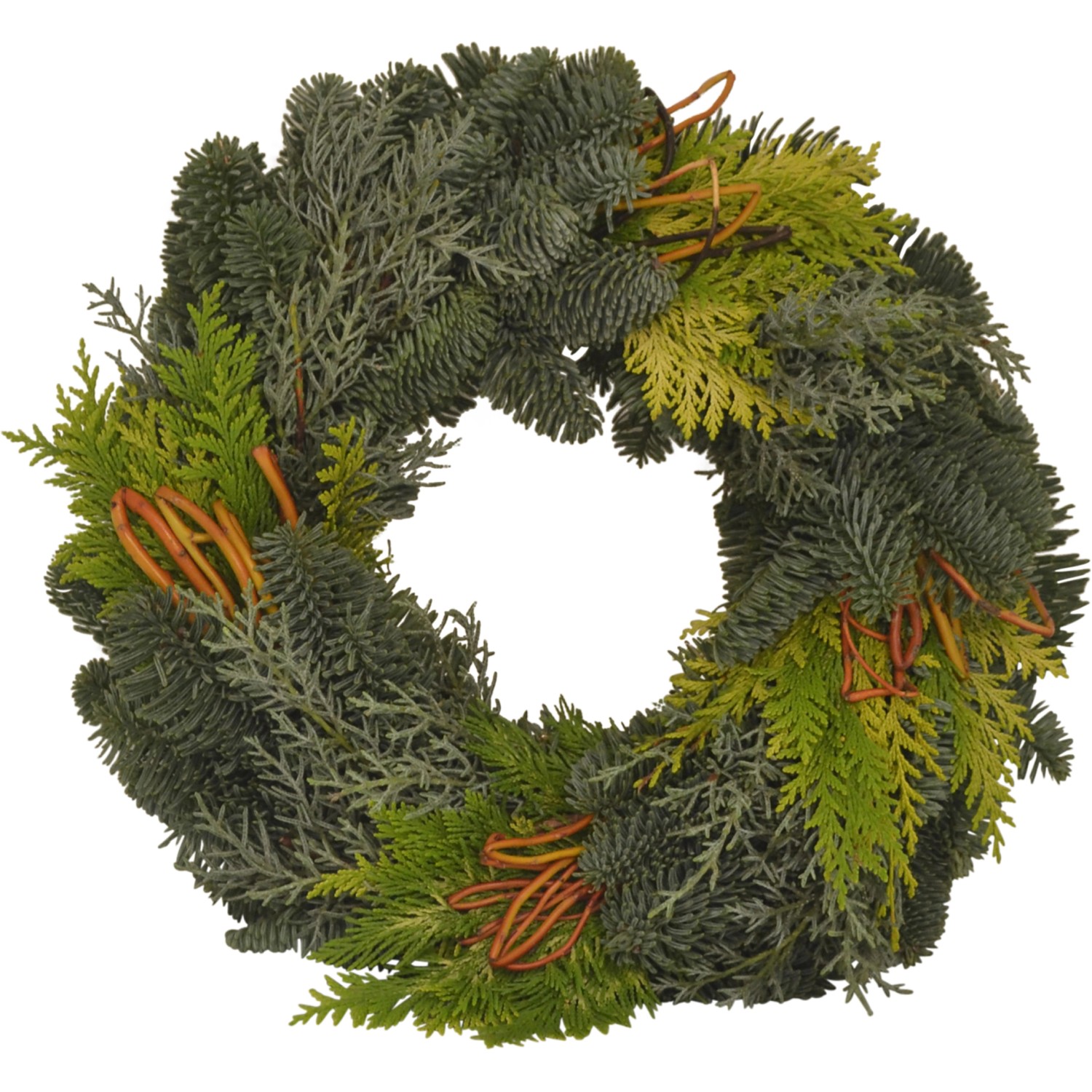 Adventskranz Koniferen-Mix mit Korkenzieherweid Ø ca. 30 cm
