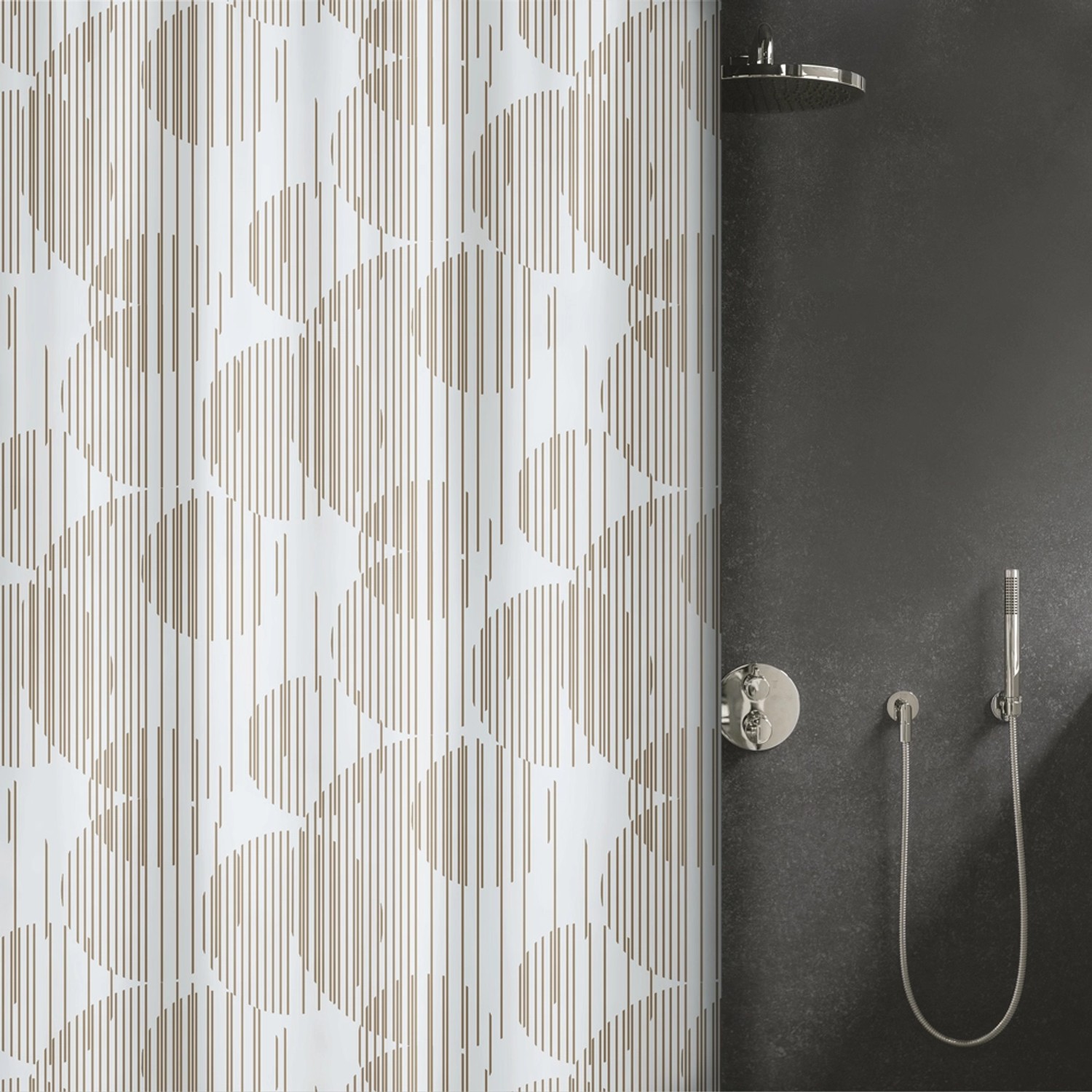 Der exklusive Spirella Elements Duschvorhang Raio überzeugt durch hochwertige Materialien und das edle Design mit einer strukturierten Optik. Das verspielte Design mit runden Formen ist ein Hingucker in jedem Bad und wirkt dennoch sehr harmonisch und passt sich der Umgebung an.
