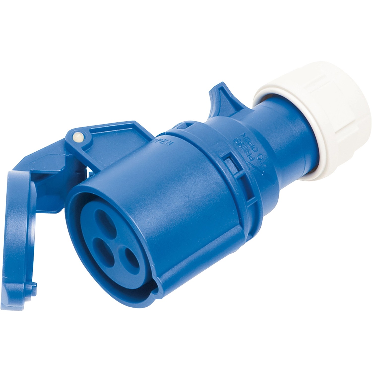 PCE CEE Caravan-Kupplung mit Schutzkappe 3-polig IP44 16 A Blau