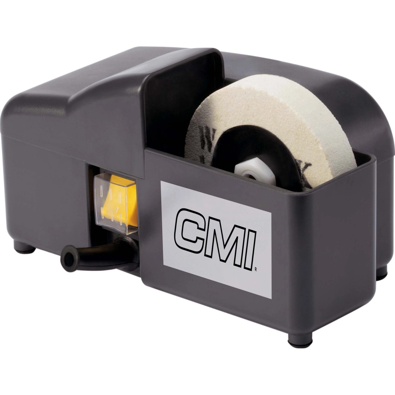 Der CMI Messerschärfer verfügt über eine Leistung von 45 W bei 250/min (Umdrehungen) zum Schärfen von Messern, Klingen und Bohrern. Das Gehäuse besteht aus robustem und widerstandsfähigem Material. Die im Lieferumfang enthaltene Schleifscheibe misst 100 mm x 16 mm. Ein integrierter Wasserbehälter hält die Schleifscheibe feucht und kühlt die zu bearbeitende Klinge. Der Schalter wird durch eine Kappe vor Spritzwasser geschützt.